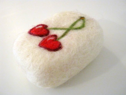 | http://www.etsy.com/listing/64937138/needle-felted-cherry-heart-soap |